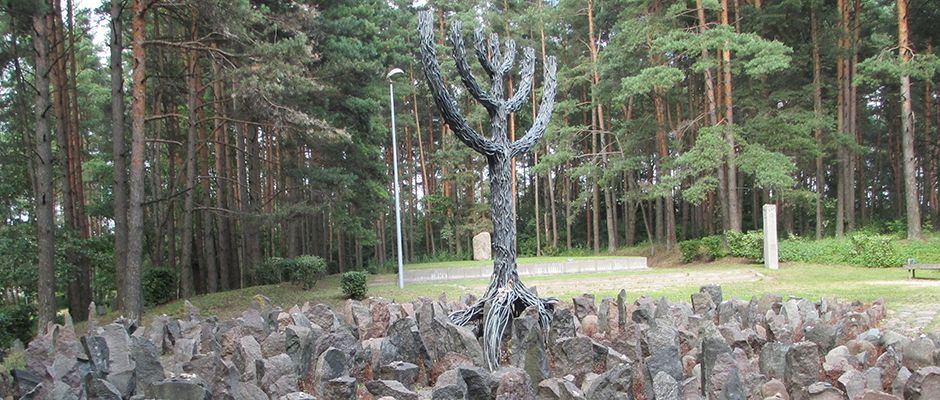Legende: Gedenkstätte für die 25000 Juden, die 1941 im Rumbula-Wald von deutschen Soldaten und lokalen lettischen Kollaborateuren ermordet wurden.